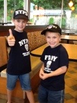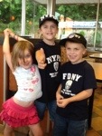 Postscript: Zac was still up at midnight last night watching me write my diary/blog, so has requested today I include a photo of him in his NYPD gear and Sam in his FDNY gear. I took the photo while Ross was ordering dinner. Belle thought the photo opportunity was not complete unless it included a dancing ballerina princess…;)