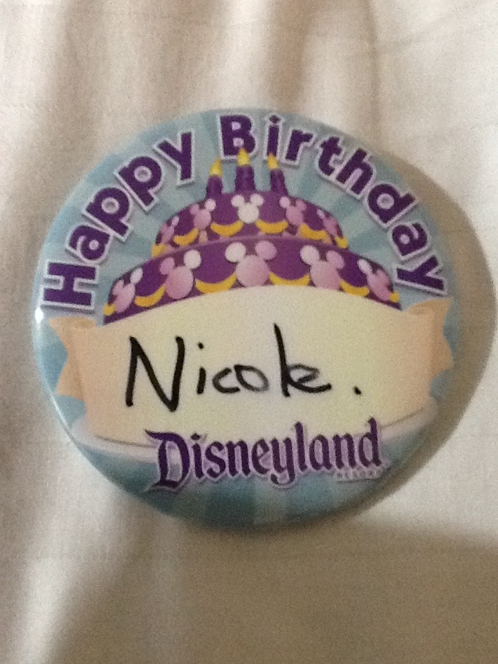 So my birthday in Australia flew by, with plans to celebrate here with a third day at Disneyland. However, there has been some discussion today about the fact if it is another birthday I must be AnOTHEr year older – and I ain’t adding two years at once!!!! Ross told the people at the gate about the celebration and they gave me a badge to wear, so everywhere we go people wish me a happy birthday! I will never celebrate with so many people again in my lifetime!!