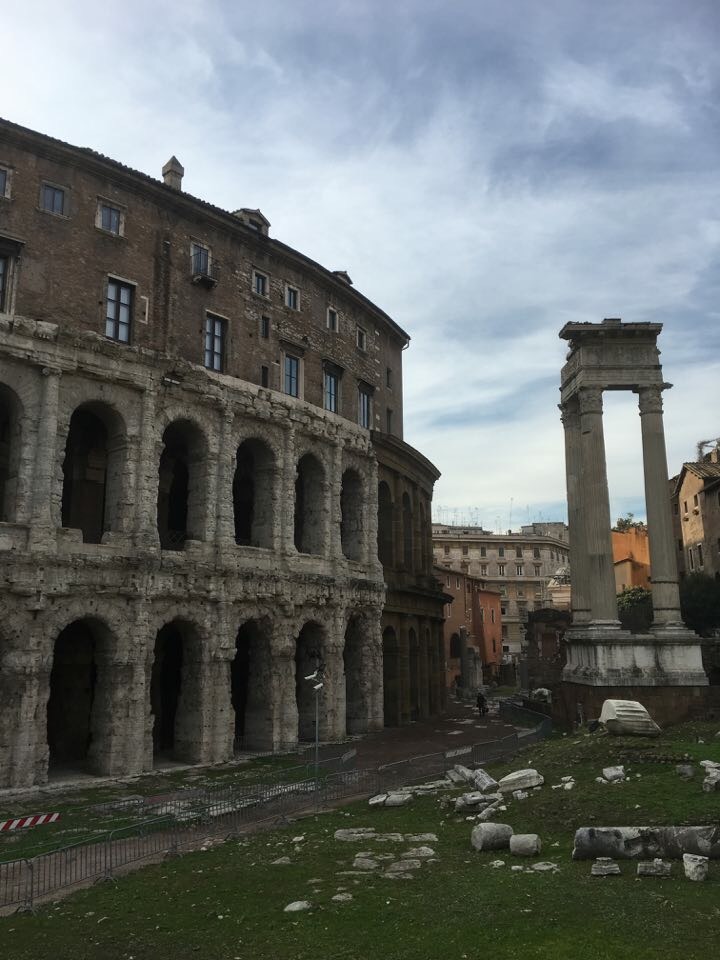 We caught bus 881 and walked down Via Corso, lunched at Da Vinci cafe along the way (the majority of us chose delicious paninis but were then jealous of the Caesar salad Abi and Zac chose!), past Area Sacra and across Ponte Garibaldi to explore the island Tibertina in the middle of the Tiber River. We then wandered back up to the bus stop past Teatro Marcello (a theatre with a facade of ancient ruins – below) and through Piazza Venezia.