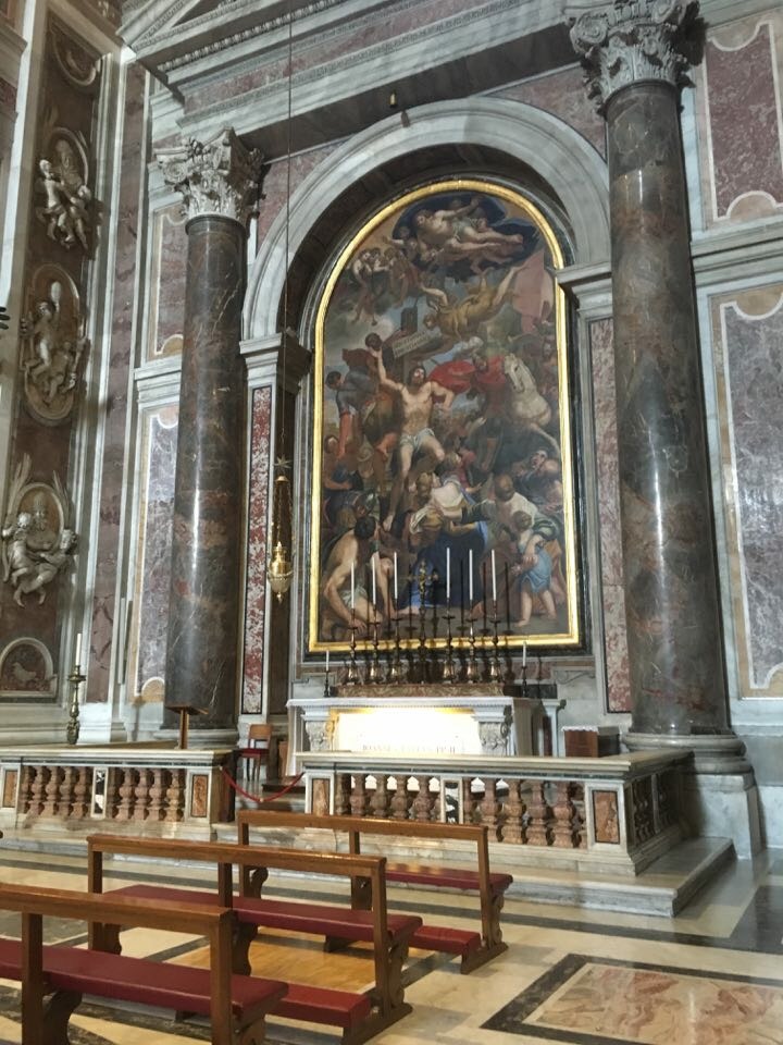 Jarrod and Ross took some good photos on our “proper” good camera, but nothing I took on my iPhone could do justice to what our senses took in today. I learnt so much about “The Judgement Day” by Michaelangelo and other paintings and tapestries throughout the museums. I have a new appreciation for and interest in art and art history. No photos were allowed in the Sistine Chapel because the company Fuji paid for the restoration, but below is the dome of St Peters Basilica and the tomb of Pope John Paul the second. We will take some time when we get home to go through and organise all the photos we took, and then Jarrod will upload them.