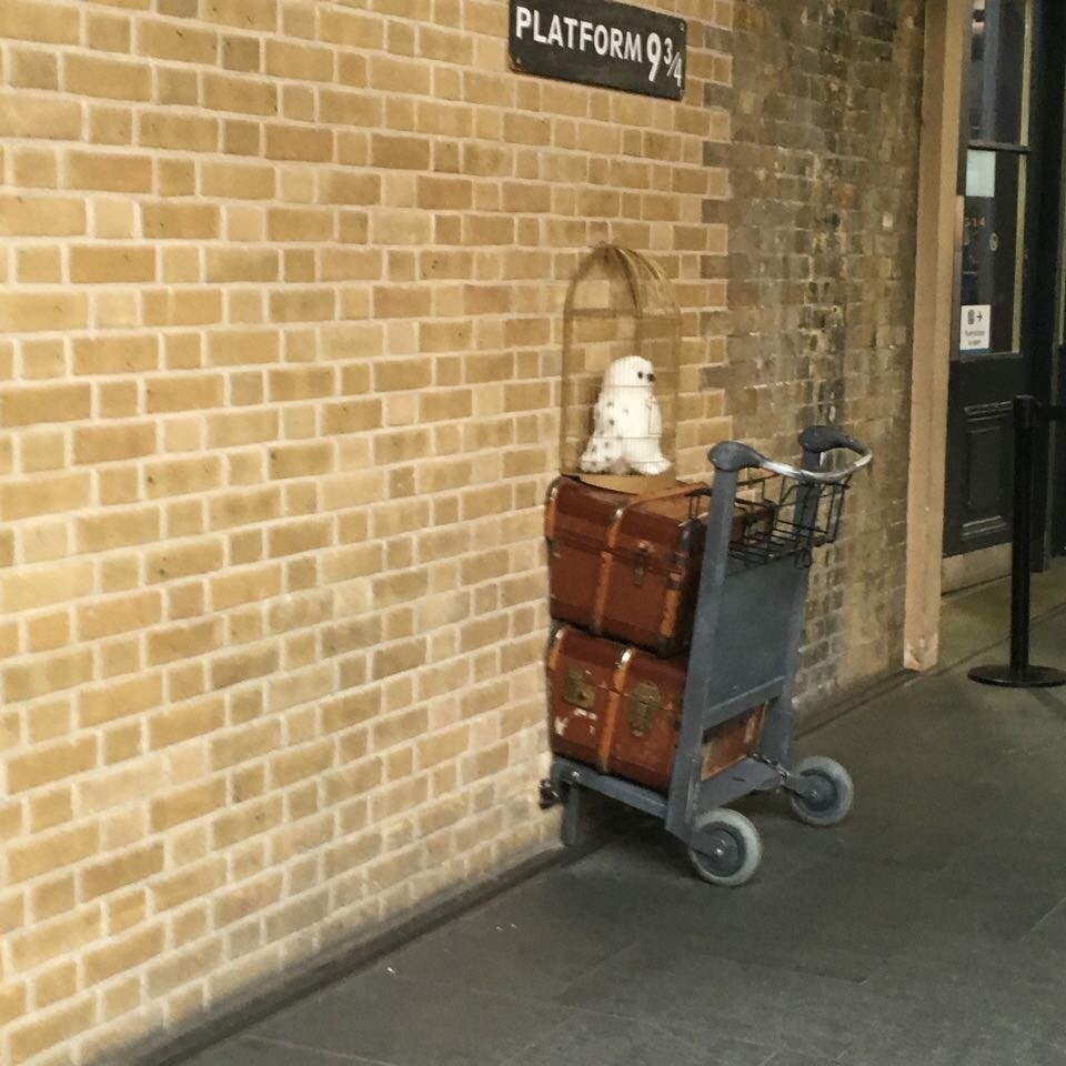 The hotel provides an included continental breakfast in its dining room between 7am and 10am, so my only stipulation was that everyone be awake in time to attend that. The kids were very surprised at the extensive sleep in that was allowed! After that the eight of us set off in search of a laundromat. We followed the hotel’s directions and found one, and walked on to St Pancreas and Kings Cross stations while it was on. I took the kids to Platform 9 and 3/4, but there was such a queue for the photo opportunity and then to purchase the photo, that below is the only photo of it we took π