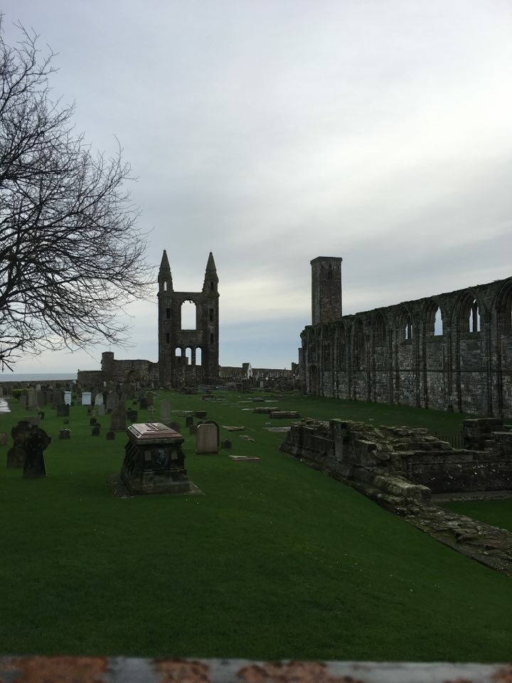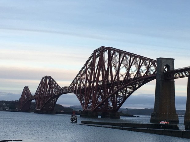 We had a leisurely 8am breakfast and boarded the coach at 9am to go to St Andrews Golf Course. This was an optional extra which not many on the tour took up, but we thought it might be a long day if we didn’t go! We crossed the River Forth and drove through beautiful countryside and several towns to reach St Andrews. We were shown around the town, some cathedral ruins, the University, the cafe where Prince William met Kate Middleton (which only interested me!), and the coach drove around the golf course. We were given time to explore it on foot – it was surprising how many people were actually playing golf today! Everyone we passed wished us a merry Christmas, it was a lovely atmosphere.