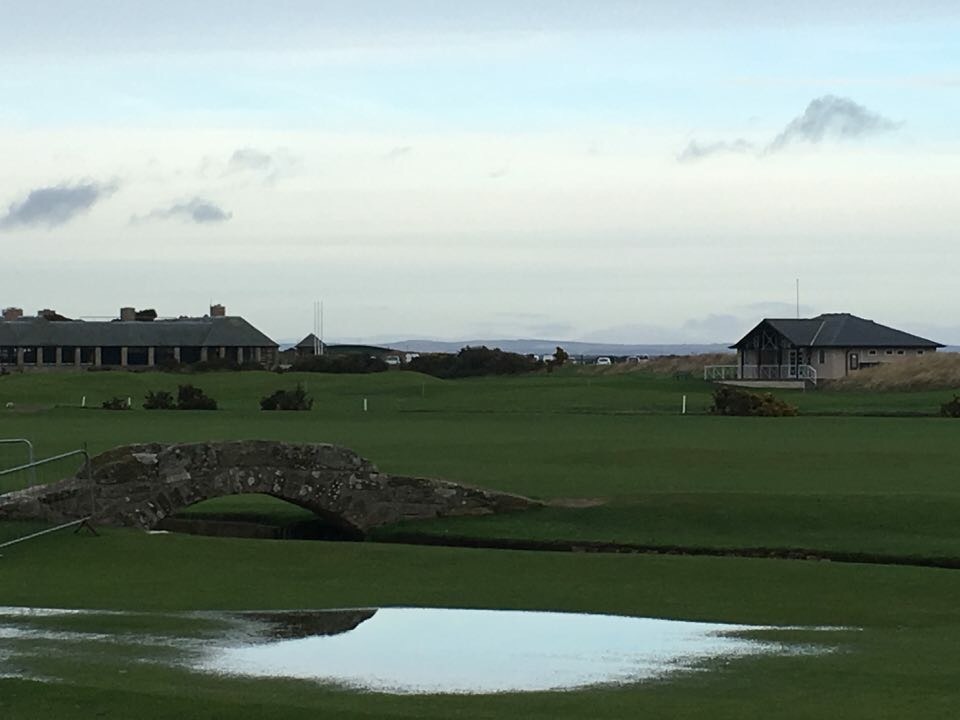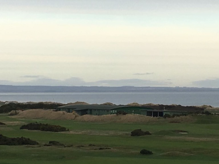 We were told we could walk on the famous little bridge, but water covered some of the course and the bridge was actually fenced off. So we went up to the fourth floor of the hotel, which had great views of the golf course and out to the North Sea, and the beach where Chariots of Fire was filmed. We then enjoyed a drink each in the hotel restaurant – the girls won with hot chocolates containing marshmallows, whipped cream and chocolate flakes!