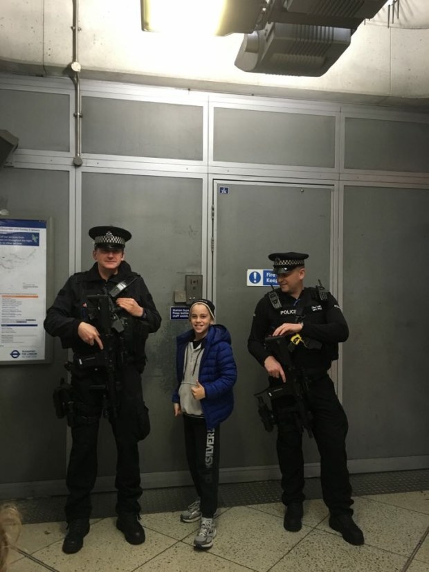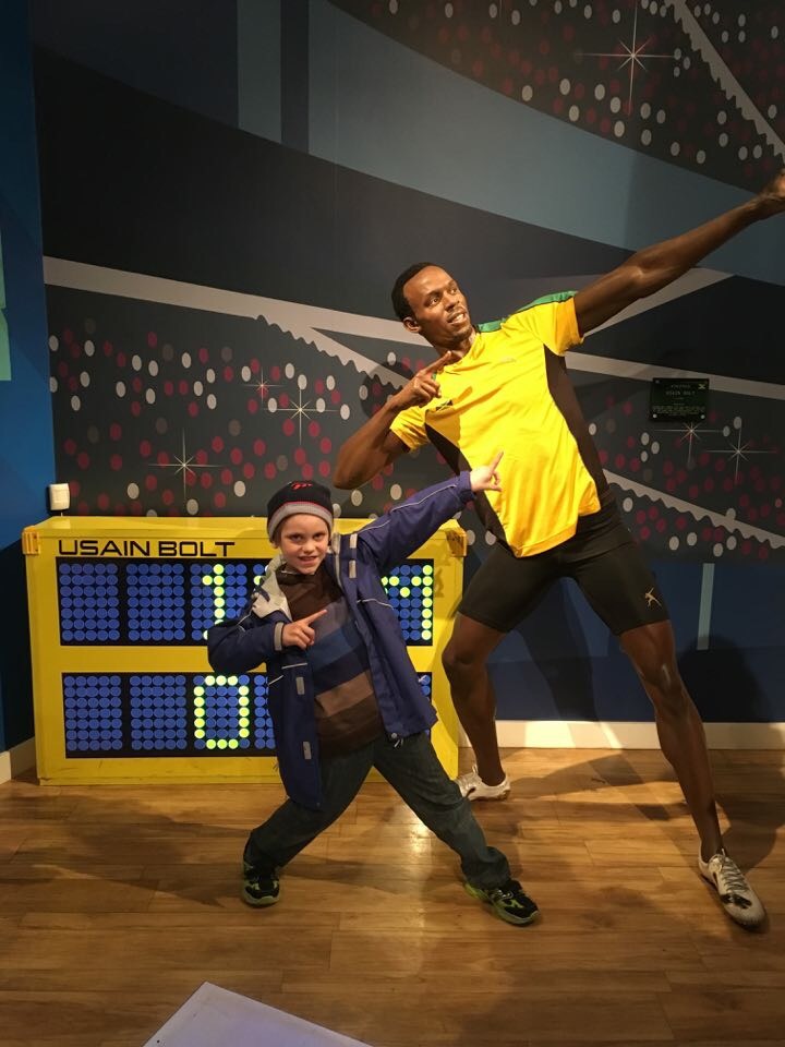 A sleep in was achieved this morning, although we still had to set an alarm and wake everyone – at 9am. When I had booked Madame Tussauds at home, I had to nominate a timeslot to arrive, so randomly picked 10.30am which meant we had to get up and get going! We walked around the corner to Green Park station, bought an Oyster card, and travelled the two tube stops to Baker St. We couldn’t get over how many policemen with many weapons were standing around in the stations, but they were very nice. Two even posed for a photo with Zac (although I was concerned about us distracting them from their job of protecting us!).