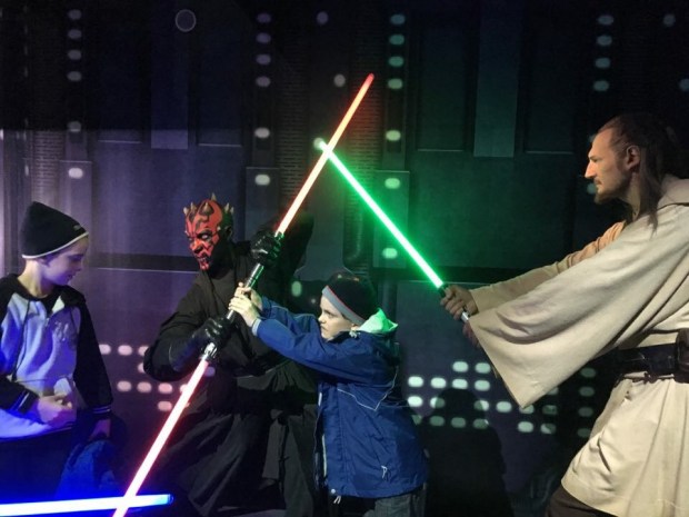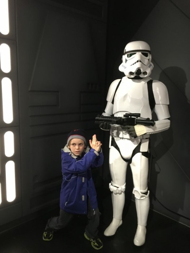 We had coffee across the road as we were early, and then waltzed through past the long queue straight in. It was slightly bedlam with all the people, but we soon got into the swing of it and enjoyed the tour, which took us almost three hours. I was really impressed with the whole place, as there were not only the wax models to see, but a ride that went through a brief history of London, a 4D experience/mini movie full of Marvel Superheroes, and a Star Wars section. This was Zac and Sam’s Christmas present, and they were stoked!