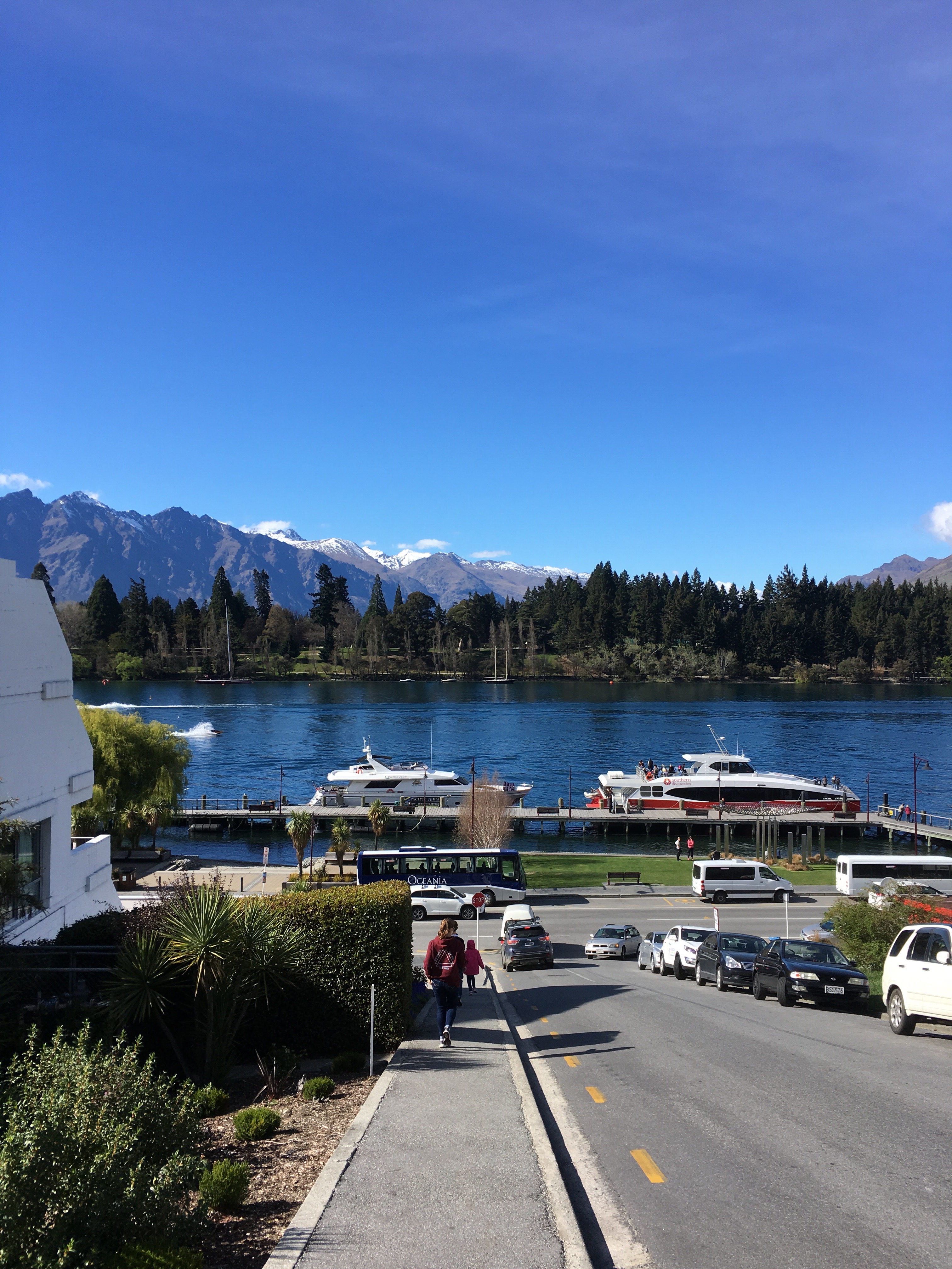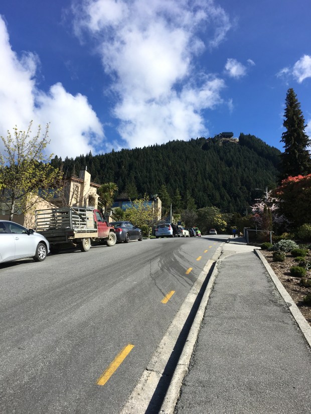 We strolled down the dockside area to explore Queenstown at 11am, well…it’s a stroll AFTER we leave Lake Street. I’m not sure the photos looking down and up the street do the incline justice…..