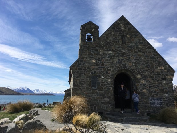 At the end of the tour, we left Dunedin for Timaru. It was a long drive, but by 1pm we had pies from a local bakery and were enjoying a picnic in Timaru Botanic Gardens. After lunch we drove another two hours to Lake Tekapo and the Church of the Good Shepherd. It was very beautiful scenery, although I think we have said that at least once on every single day of this holiday!