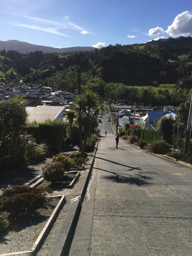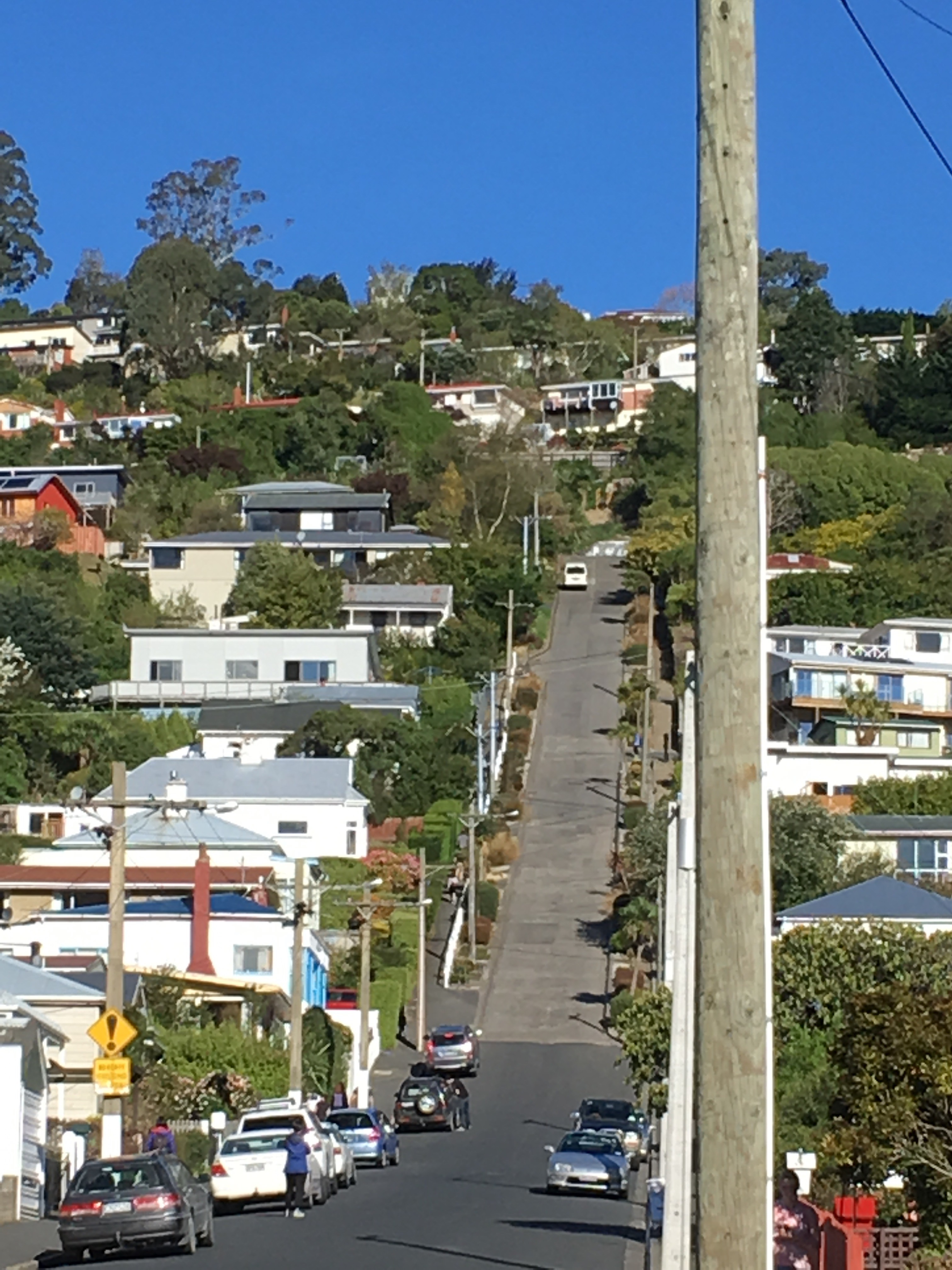 As we returned to the city, we detoured via the steepest street in the world, Baldwin St. The little three were very keen to climb it, and I was keen to hold the bags and jackets while they did. In the end we all climbed it at our own pace (which is my polite way of saying they waited for me back at the bus!) – around 300 steps up a street at an incline of 19 degrees! π³