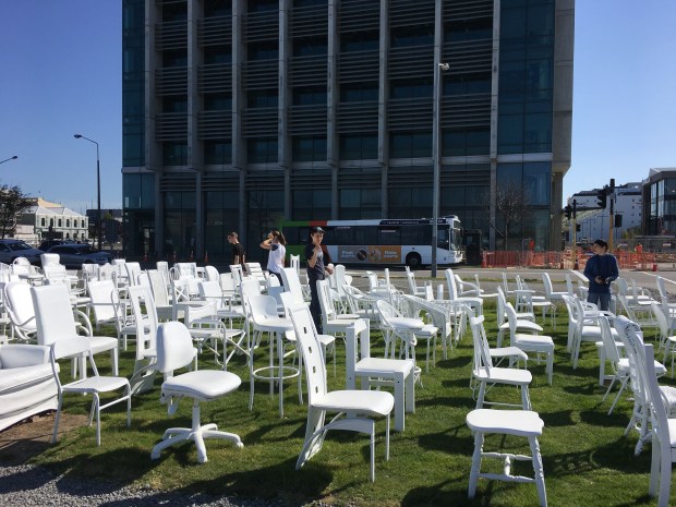 Once we disembarked the tram, we headed over to the Cardboard Cathedral, which was built after the earthquake to replace the previous church of Gothic stone that crumbled with the tremors. The street behind that contained an artistic structure called the 185 empty chairs, a monument to the 185 people who lost their lives in the earthquake of 22 February 2011. One problem: I live with several maths nerds who felt the need to count the chairs,only to discover there are 186!! And the maths nerds live with some OCD-ish wonderful people, who find that disturbing!