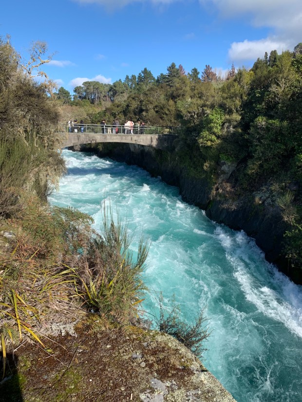 We drove on towards Lake Taupo, stopping just before there at Haku Falls, where 220,000 litres of water per second barrels over an 11m high waterfall. And it was only a 3 minute walk to access the lookout!