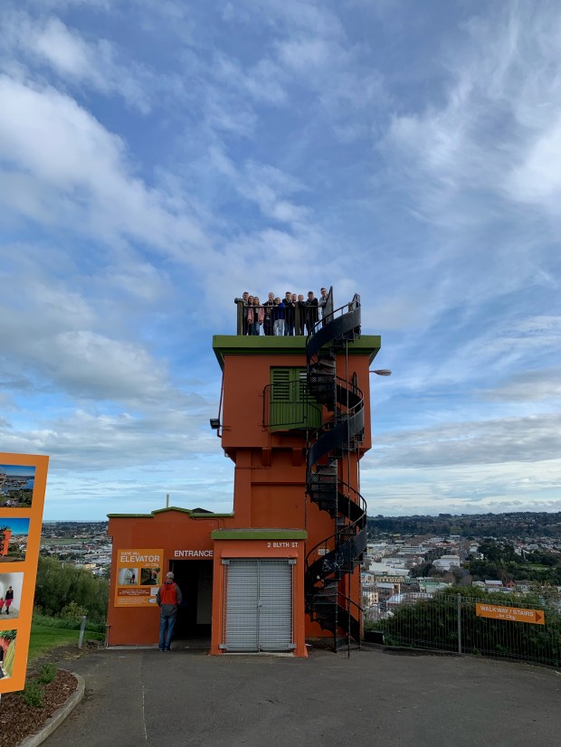 We survived the night! 😉 The top 10 things to do in Whanganui as per TripAdvisor and the Guest Info book in our room include local markets, a paddle steamer ride (out of action for maintenance), national park walks (Aunty Beck says no…), and a Bridge to Nowhere (quite literally) which is in the National Park and accessible by kayak! There is also a historic church called Putiki covered in intricate Maori carvings – which we drove to but did not enter as it looked like private land – and NZ’s only underground elevator which takes you up to a lookout and tower to climb.