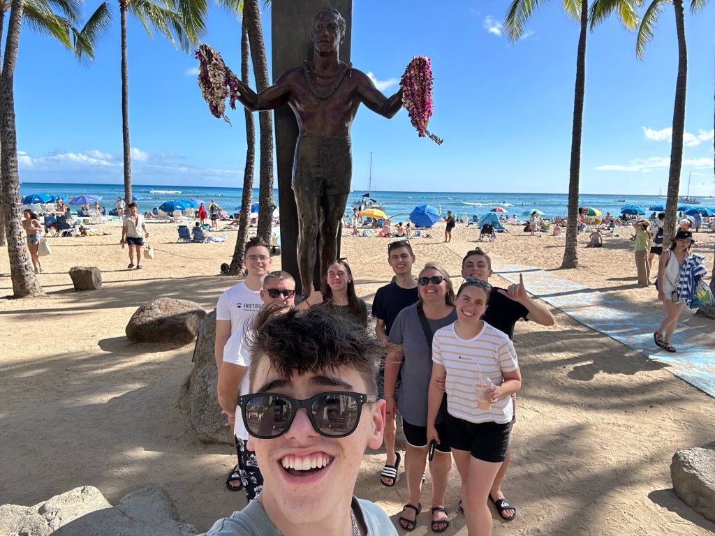 After catching up, we all donned our swimmers and went down to the main beach for a quick dip and to earth ourselves before we walked Kalakaua Ave exploring. We visited a market stall inside of the International MarketPlace, and we walked up to the famous statue where the boys had a quick swim.