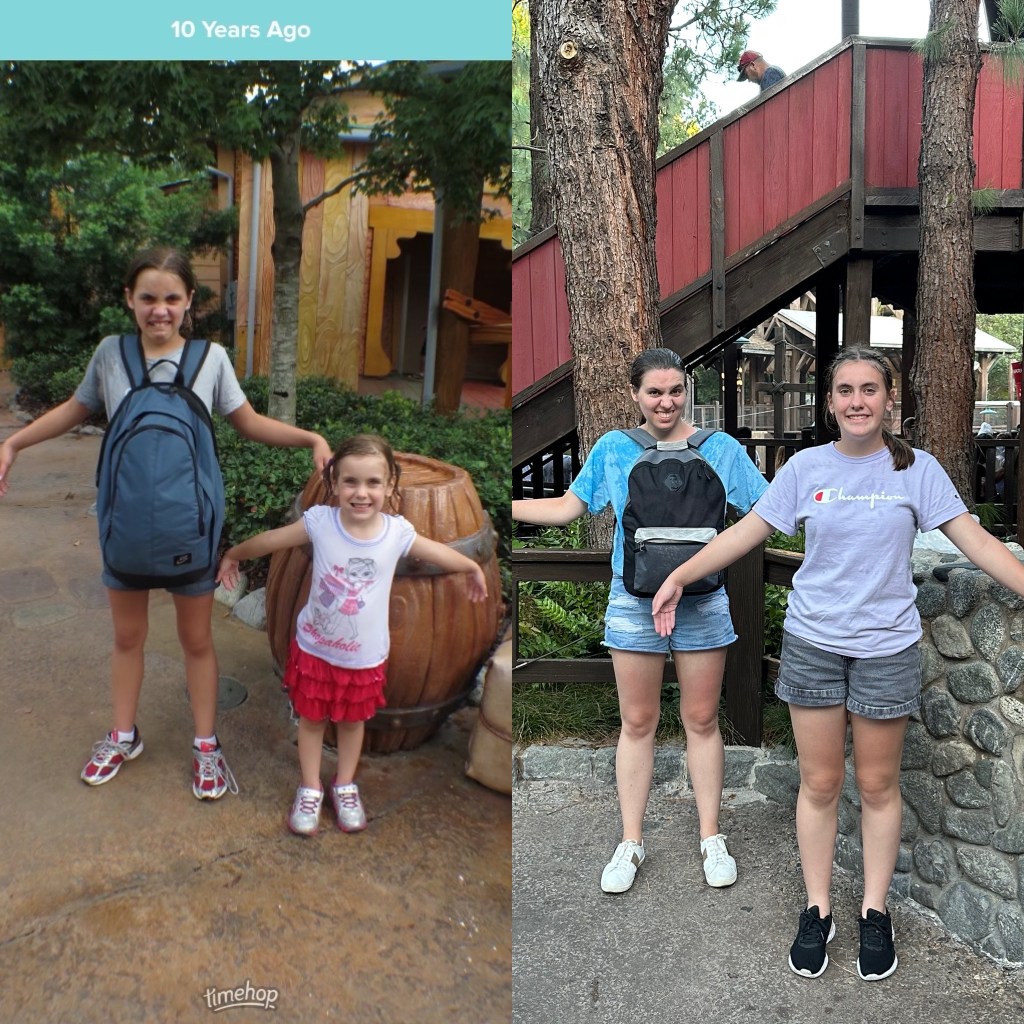 Belle is still sad this morning that we are leaving Disneyland, but also that the girls’ trip is coming to an end. Abi is feeling much better after a good sleep, and I will make sure she has some decent sleep tonight as well (after all, I have monitored her sleep and eat schedules for nearly 21 years now….). While Belle and I bought Mickey Mouse ears to wear while at Disney, Abi brought from home the pair she bought here on our last trip 10 years ago to save me money. I did tell her to choose another shirt/bag/something as a souvenir of this trip, but between being low maintenance, indecisive and exhausted, she never chose something so is leaving with her birthday badge, and with wonderful memories of her girls’ trip 😉