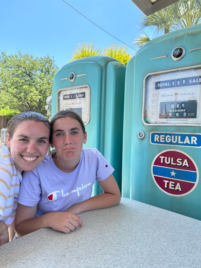 We made good use of the Lightning Lane fast passes again, and also discovered the time saver of going single rider. At the CarsLand Radiator Springs ride for example (my version of a roller coaster!), the cars seat 6 in two rows of 3, so when say a family of four enters, there is a seat in each row left over for the single rider. Doing this ride this way, we got to do the ride twice, and I got to ride with Abi first and then Belle. This ride is one that is not eligible for the fast pass, but you can pay $20 per person to skip the queue. As we arrived, there was a 70 minute wait for the ride, which made us decide to go as single riders. We sauntered up the lane and were on the ride within 10 mins. I chatted to the couple next to me (their two teenage daughters sat with Abi in front of us and Belle was in the car in front), and discovered they had paid the $80 to avoid the line – the conversation became slightly awkward as they discovered we had not paid and made it onto the ride in a similar amount of time to them! 🤭