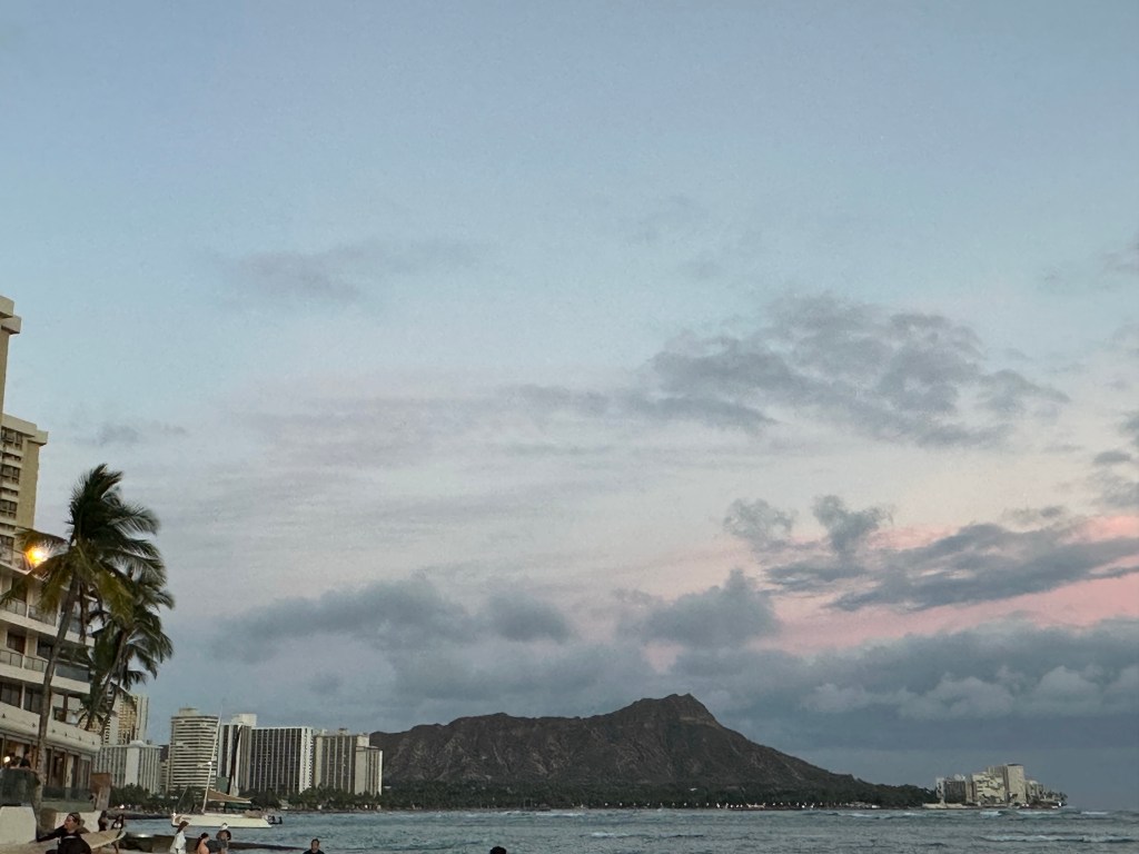 Then I walked everyone down to the beachfront to watch our last Hawaiian sunset. When I was here with friends last year, the sunset was just magnificent and I wanted the family to see it. The photos don’t do justice to what we were able to see.