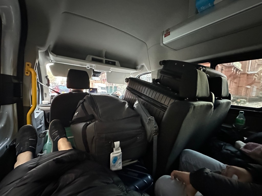 Luke had to return the 17 seater bus by 12pm, but wanted to drop us and our luggage to the hotel in Victoria, London first. We had chosen the bus based on pictures showing a decent-sized boot, but the reality was a little different. The people had to be packed into the bus first so the luggage could be placed around us, and we had to stop it rolling around for the three hour trip from West Ashton to London.