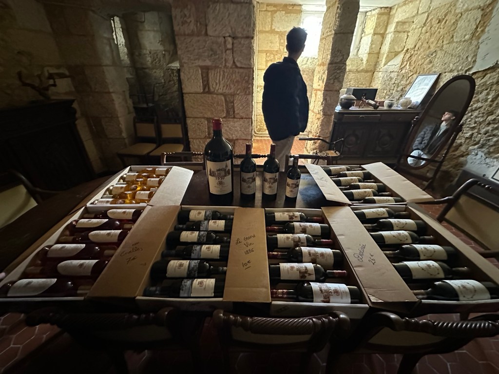 Estelle has a degree in wine, and she and her brother run the vineyard attached to the chateau, producing and selling wines under their name Maison Borgeat. She offered to do a wine tasting class after we unpacked, and put out a sample of wines for us to try and a selection in the wine cellar to help ourselves if we wished to purchase them.
