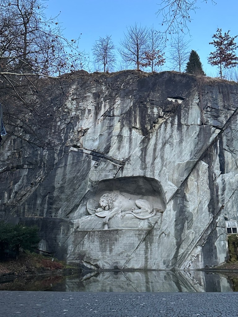 We then congregated in the lobby and did our own walking tour of the Old Town. I had used the time elevating my foot to read every brochure available in the room, so took everyone to the Chapel Bridge, Needle Dam, Spreuer Bridge (built in 1407 as part of the city’s fortification efforts) and other sites. We even wandered as far up as the Lion Monument.