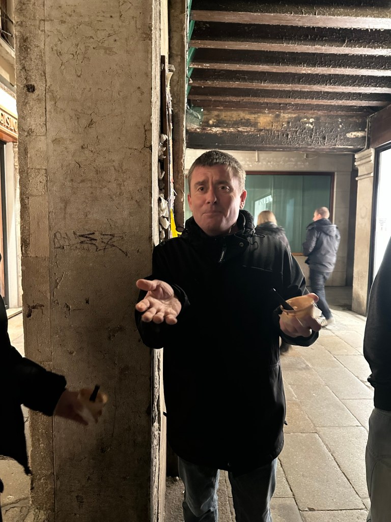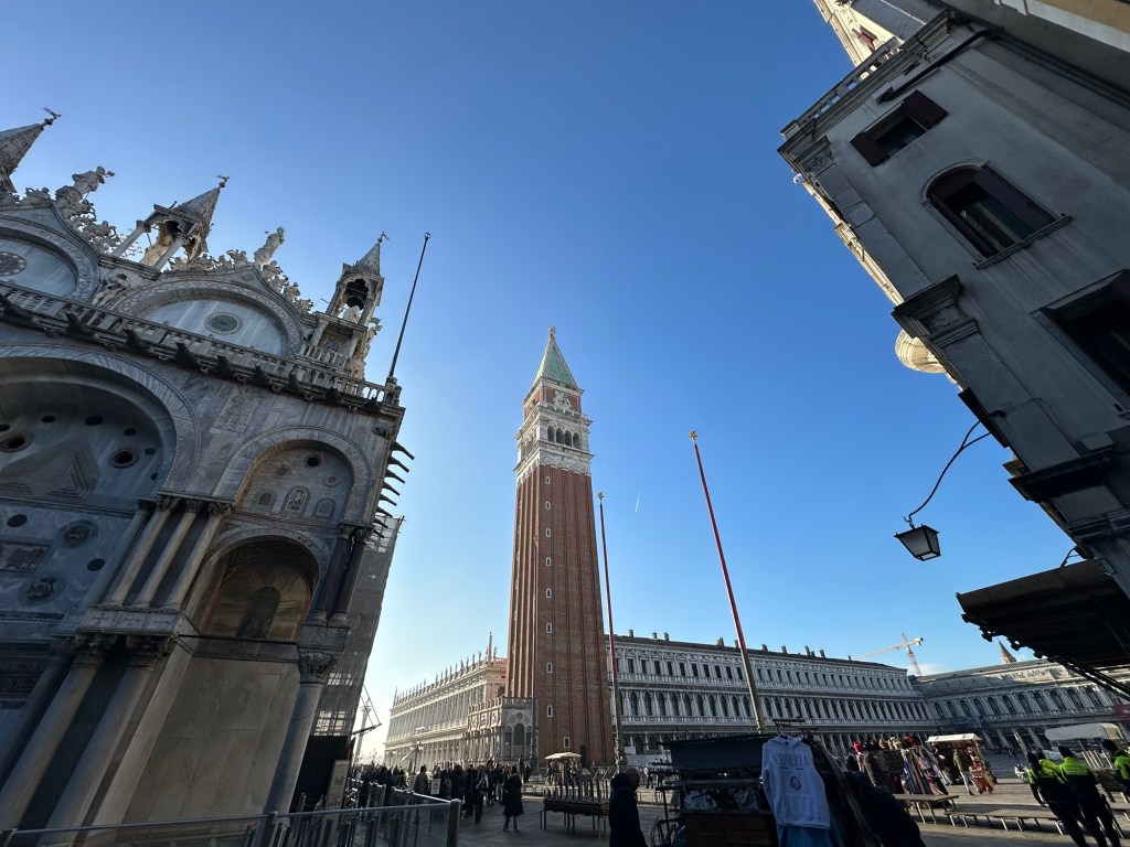 We met in the foyer after breakfast at 9.30am and walked to St Mark’s Square. We paid 3 euro each to go inside the Basilica of St Mark, which was impressive but disappointing that once inside there were other sections and a museum you had to pay more euro to enter. We had hoped to climb the bell tower outside as well, but it is closed for renovation until the end of February. St Mark’s Square was much emptier than I have ever seen it before, eerily quiet compared to the streets and laneways around it.