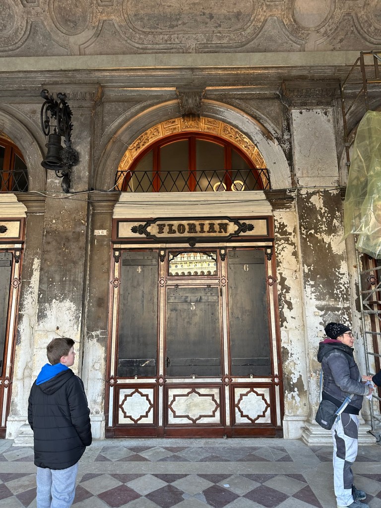 We then walked back up to St Mark’s Square to find the oldest coffee shop in Italy, Caffe Florian. It was also closed for renovation! Everyone except Ross and Luke were keen to take a gondola ride, so we found two in a smaller canal and enjoyed a half hour ride (for 90 euro!).