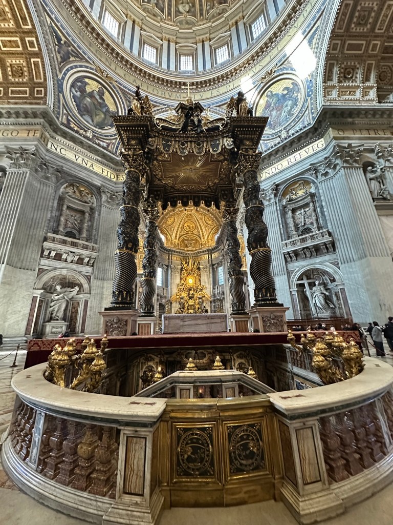 Once at Vatican City, we immediately lined up for St Peter’s Basilica, which is always free to enter. The Pope is in residence and seeing crowds tomorrow, so there were not too many people there today and the line was very short.