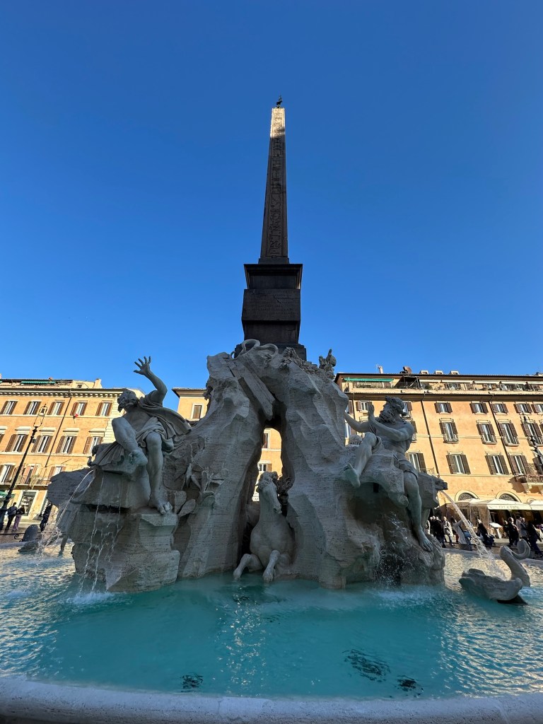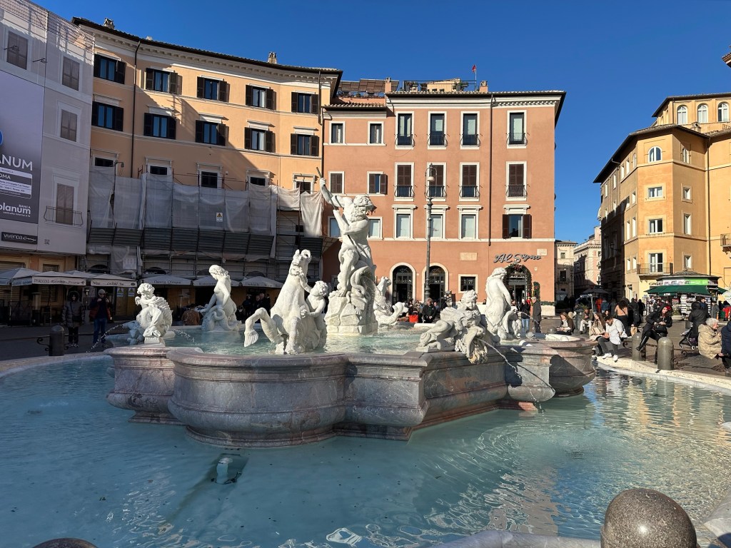 We walked through Vatican City (which is the smallest country in the world, with a 2024 population of 517 people), and back to Italy across the bridge over the Tiber River. We then caught a bus up to the Trevi Fountain. While the others lined up to walk down to the water’s edge, Ross and I walked up the street to find the apartment we stayed in last time we were here. We also went in search of the coffee shop we frequented twice a day, but it has been replaced by a gelato shop!